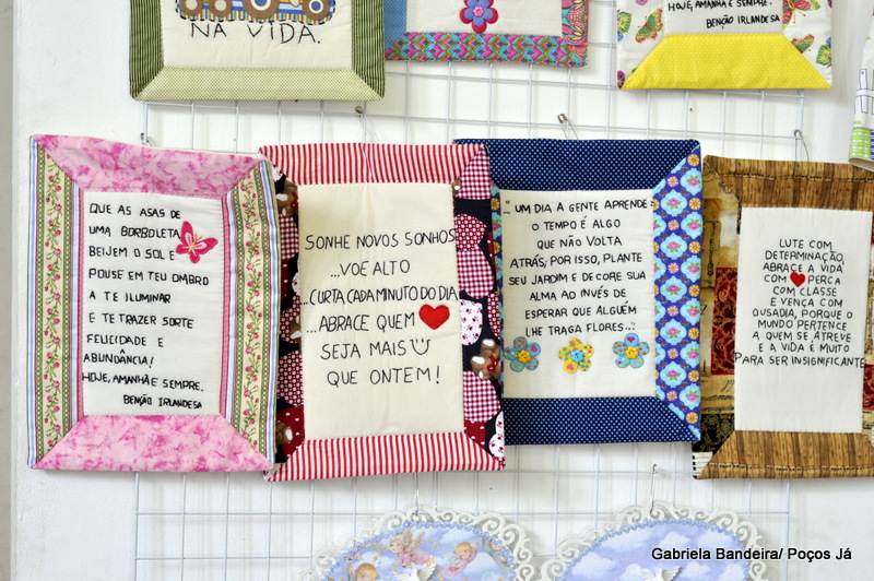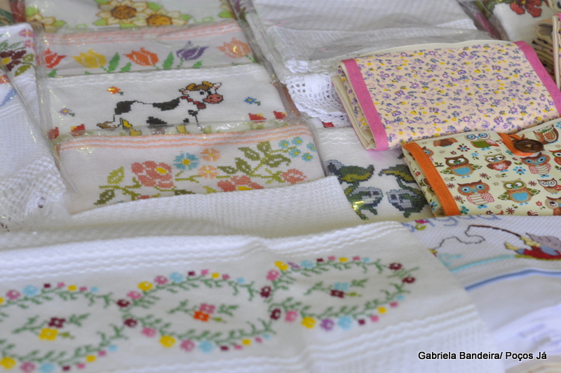 Até o próximo domingo (5) o Salão Norte do Espaço Cultural da Urca estará tomado por artesãos poços-caldenses, que expõem e vendem seus produtos na feira Poços de Cores. A maioria dos objetos consiste em panos de prato, toalhas e quadros bordados à mão, além de potes decorados, flores, sacolas reutilizáveis e muitos outros. “Muitos artesãos não têm banca nas feirinhas, então eles fazem e não têm onde vender. Esta feira não é para fins lucrativos, é para cada um vender seu produto”, explica uma das organizadoras, Maria Aparecida Garcia.