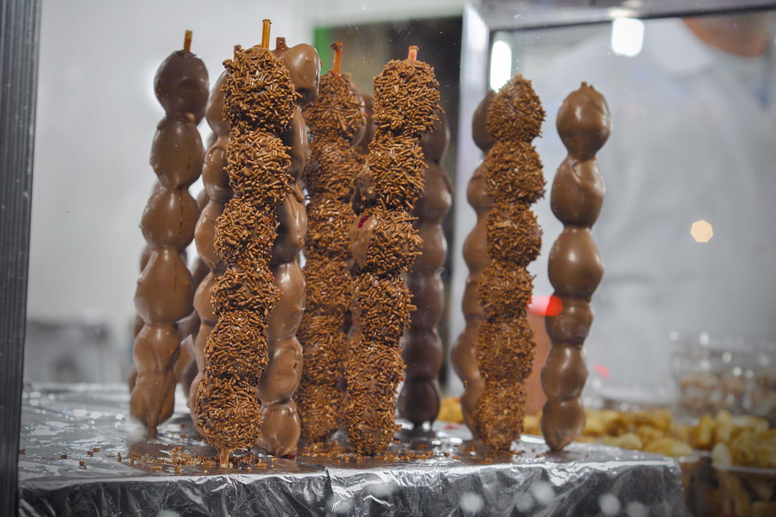 Os preços dos doces são praticamente os mesmos nas barracas. Vão de R$ 3,50 a três por R$ 10. Espetinho, fondue e cones custam cerca de R$ 5.