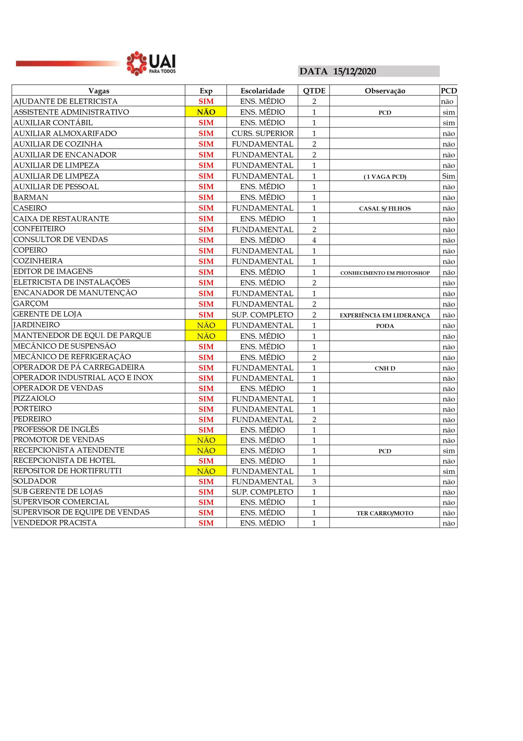 O Sistema Nacional de Empregos (Sine) em Poços de Caldas oferece diversas vagas nesta terça-feira (15). Para se inscrever, o candidato deve fazer o agendamento online (clicando aqui).
