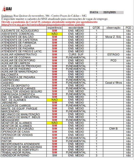 O Sistema Nacional de Empregos (Sine) tem 29 vagas abertas nesta terça-feira (23), em Poços de Caldas. Para se inscrever, o candidato deve fazer o agendamento online (clicando aqui).