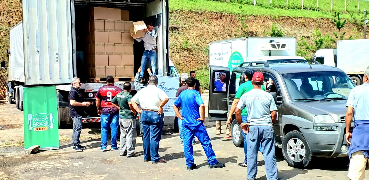 Nesta quinta-feira (10), o Sindicomércio e o Sistema Fecomércio MG, Sesc e Senac fizeram a doação de mais de sete toneladas de batatas congeladas para 27 entidades de Poços de Caldas e região cadastradas no programa Mesa Brasil e para o banco de alimentos do município.