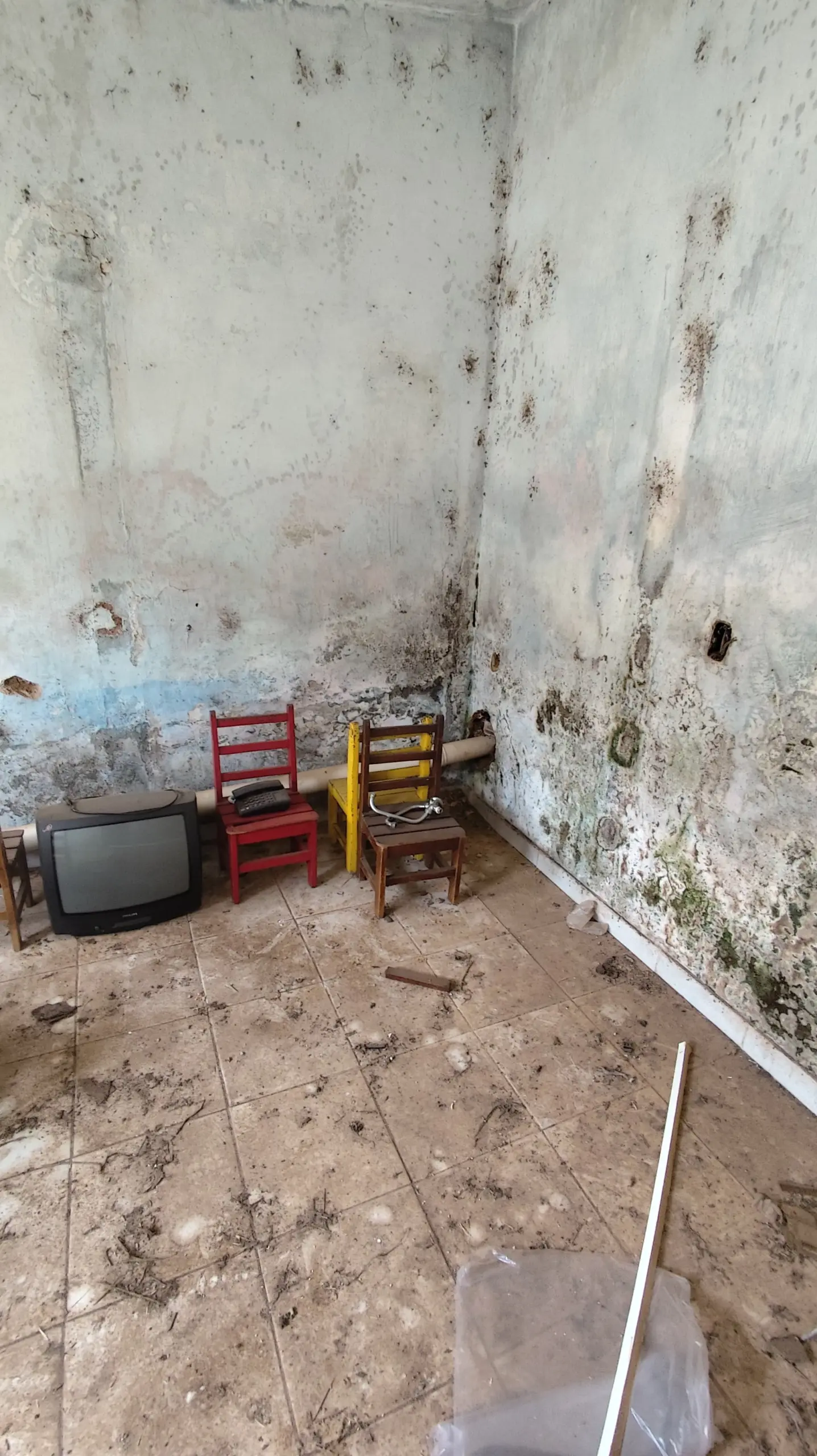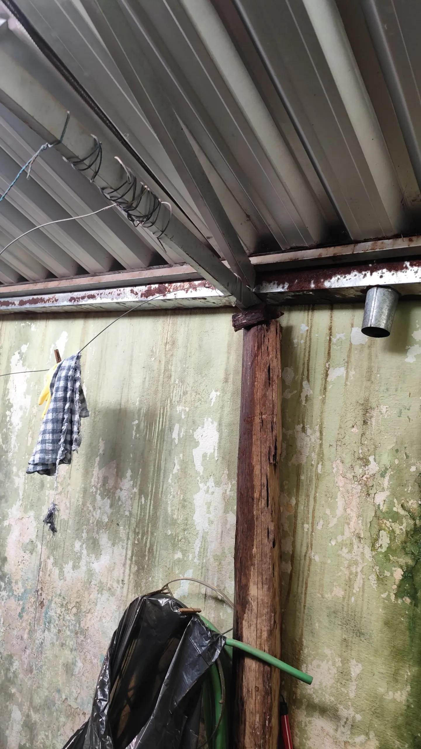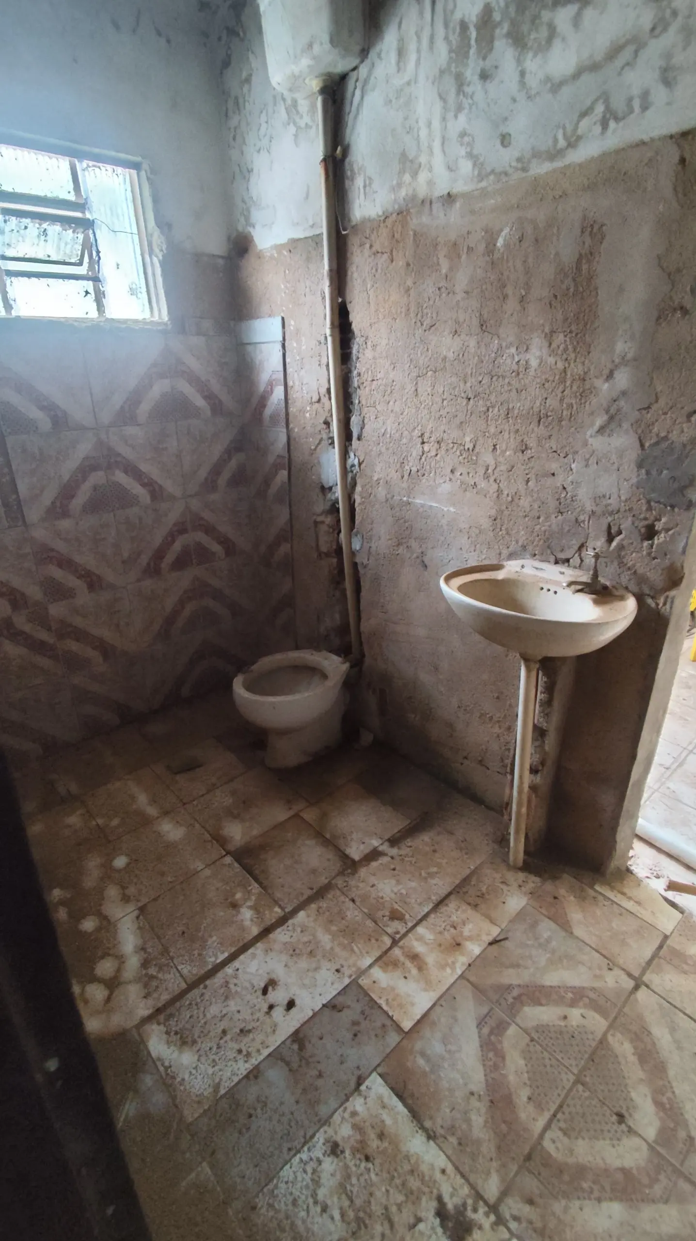 Entre as principais questões identificadas estão o telhado e as calhas enferrujadas, com risco iminente de desabamento, além de uma cobertura improvisada, escorada com pedaço de pau. Goteiras e a entrada de água em diversos pontos da estrutura também são problemas recorrentes, agravando a situação.