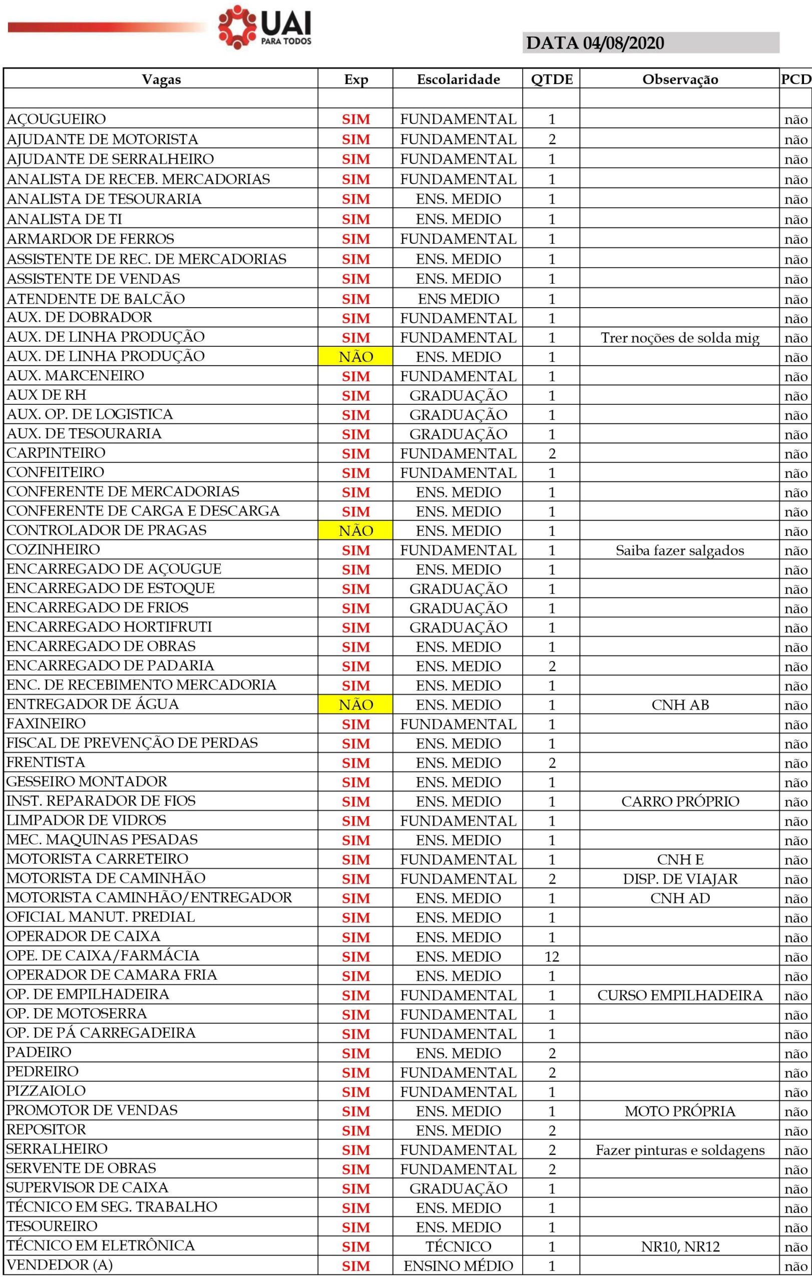 O Sistema Nacional De Empregos (SINE) está com oportunidades abertas para mais de 70 cargos em Poços de Caldas nesta quinta-feira (20). O número de vagas é superior, já que em alguns casos a contratação prevê mais de uma pessoa.