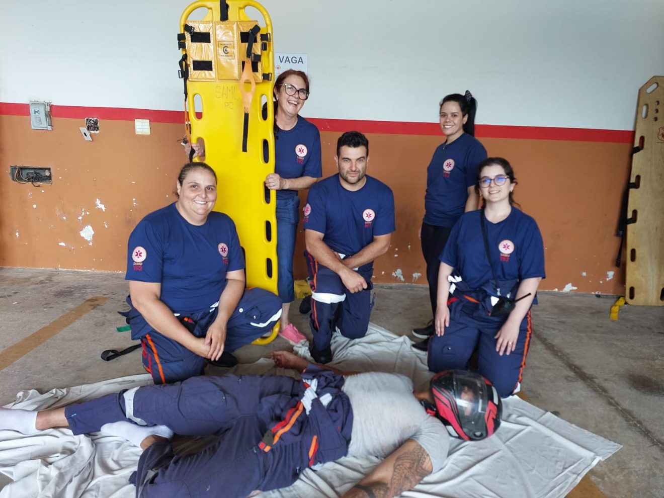 Ontem (21), a equipe do Serviço Móvel de Atendimento de Urgência (Samu) realizou um treinamento sobre atendimento ao paciente vítima de trauma com os novos colaboradores que ingressaram no serviço.