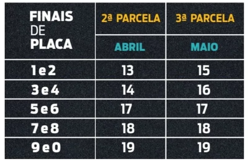 A segunda parcela do Imposto sobre a Propriedade de Veículos Automotores (IPVA) de 2023 deve ser paga a partir desta quinta-feira (13), em Minas Gerais. A escala de vencimentos, que tem início com os finais de placa 1 e 2, vai até a quarta-feira (19) da próxima semana, se encerrando pelos finais de placa 9 e 0.