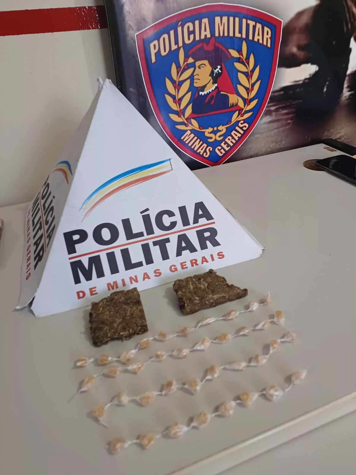 Na ocasião foram apreendidas 42 pedras de crack, três papelotes de cocaína, quatro tabletes de maconha, uma bucha de maconha, uma pedra bruta de crack e R$ 172 em dinheiro.