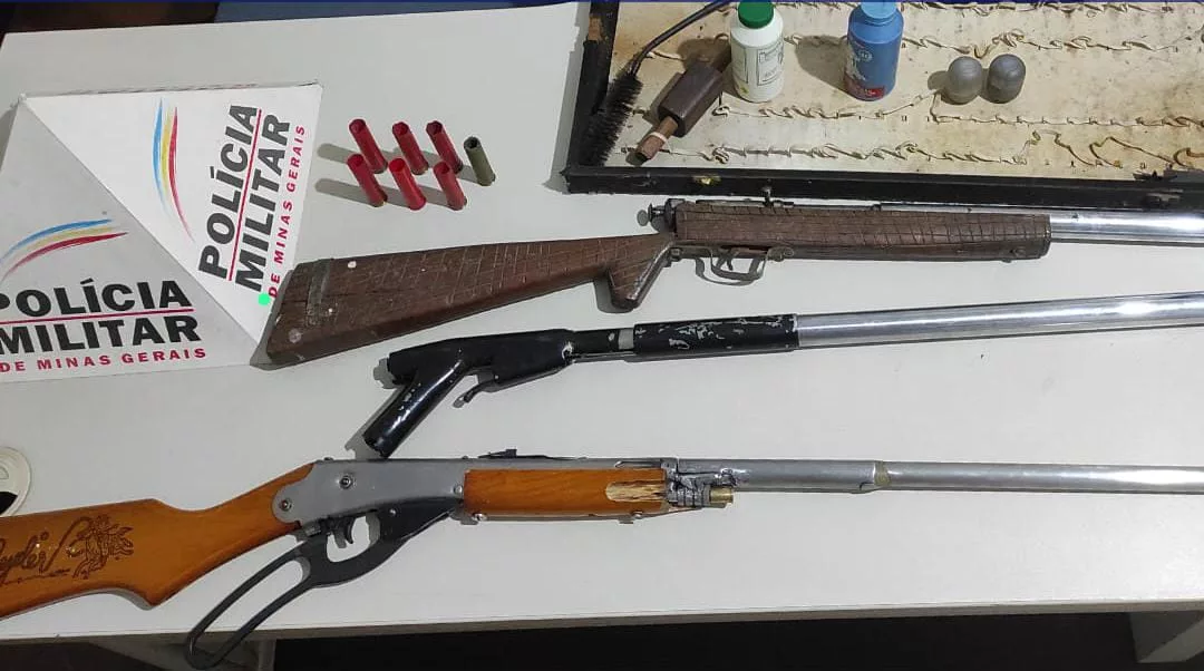 Três armas de fogo e diversas munições foram apreendidas e dois homens, ambos de 45 anos, presos.