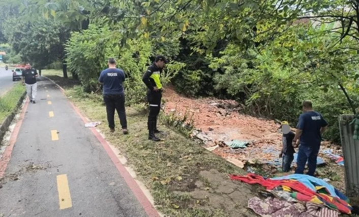 Um homem espalhou diversos objetos na avenida Vereador Edmundo Cardillo, em Poços de Caldas, na tarde da última quarta-feira (21). A casa onde ele morava, às margens da via, foi demolida por estar irregular.