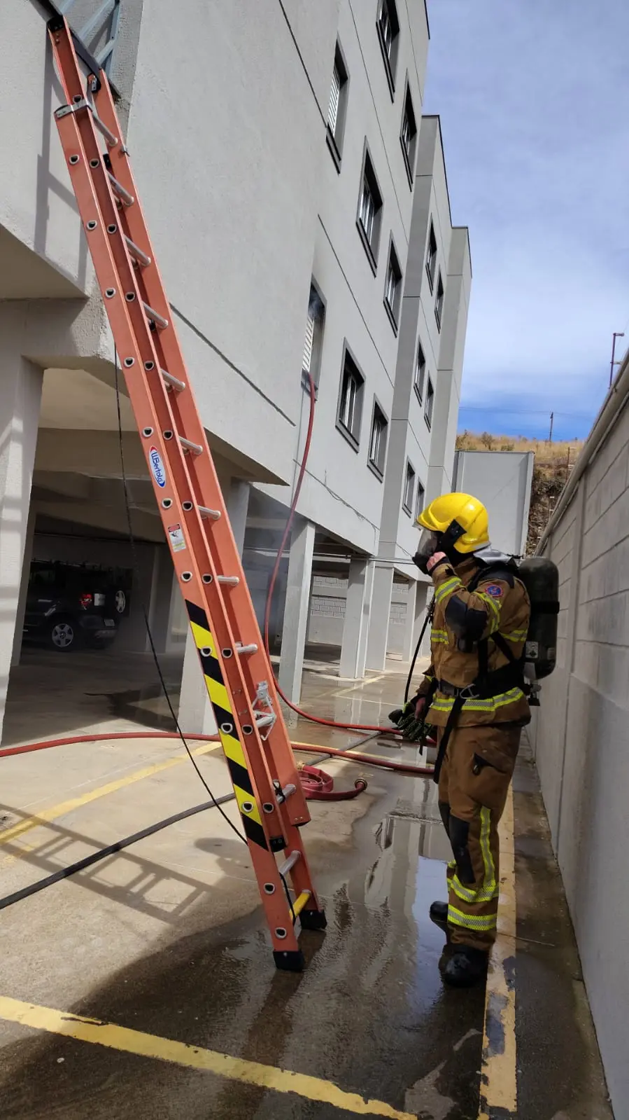 Ao chegarem ao local, os bombeiros encontraram o apartamento tomado por uma fumaça densa que saía pelas janelas. O prédio foi, portanto, evacuado e todos os moradores conseguiram deixar seus apartamentos em segurança. Durante os levantamentos, foi informado que um gato permanecia no segundo andar.