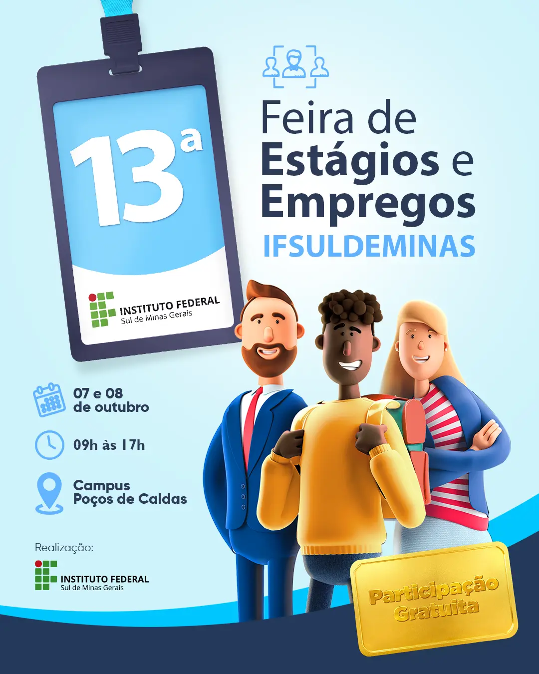 O quê: 13ª Feira de Estágios e Empregos do IFSuldeMinas – Campus Poços de Caldas