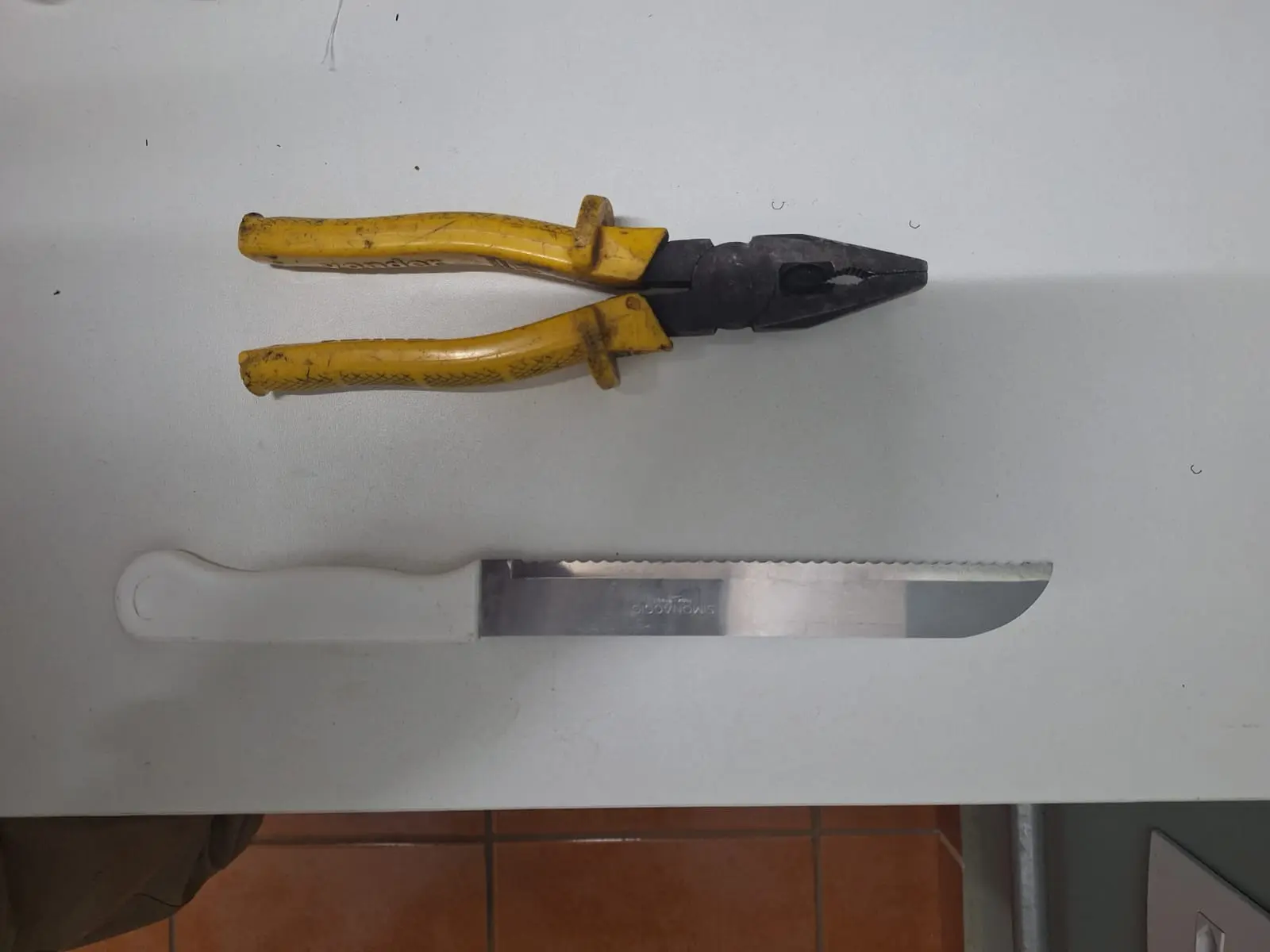 Além dos dois autores, a polícia encontrou e apreendeu todo o material relacionado ao crime. Entre os itens estavam aproximadamente três metros de fiação de telefonia que já haviam cortado, uma mochila preta com uma faca serrilhada de aproximadamente 20 cm, um alicate de cabo amarelo, pedaços de fios e um saco de linho.
