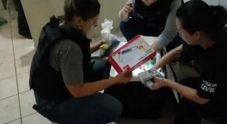 Dentro do local, as equipes localizaram uma grande quantidade de entorpecentes e todos os materiais necessários para o tráfico. Entre os itens apreendidos estão: 21 papelotes de cocaína já fracionada para venda, maconha prensada, maconha em flor e 120 comprimidos de ecstasy. Além disso, havia diversas embalagens do tipo zip lock, lacres plásticos utilizados na dolagem, faca, balanças de precisão, rolos de filme PVC e outros apetrechos.