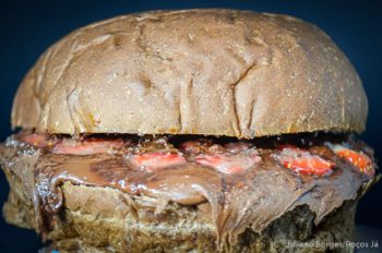 Com pão de cacau, a opção doce tem Nutella e morangos, a R$ 19,90. É leve e dá para comer inteiro!
