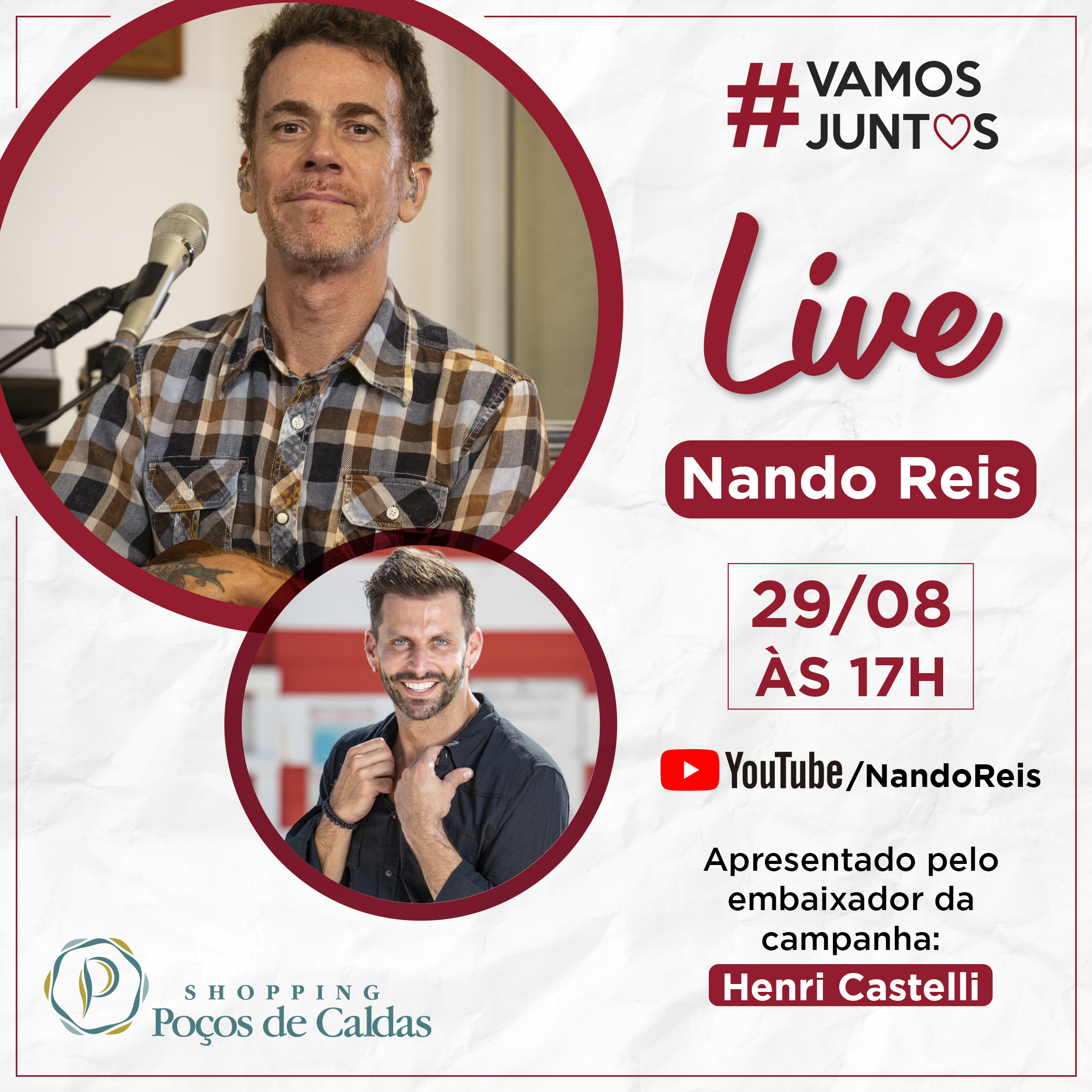A Partage Shopping, holding que administra o Shopping Poços de Caldas, lançou a campanha solidária #VamosJuntos em seus nove empreendimentos. Para dar continuidade ao projeto e ajudar ainda mais pessoas, o cantor Nando Reis comanda uma live em seu canal no YouTube no dia 29 de agosto (sábado), às 17h.