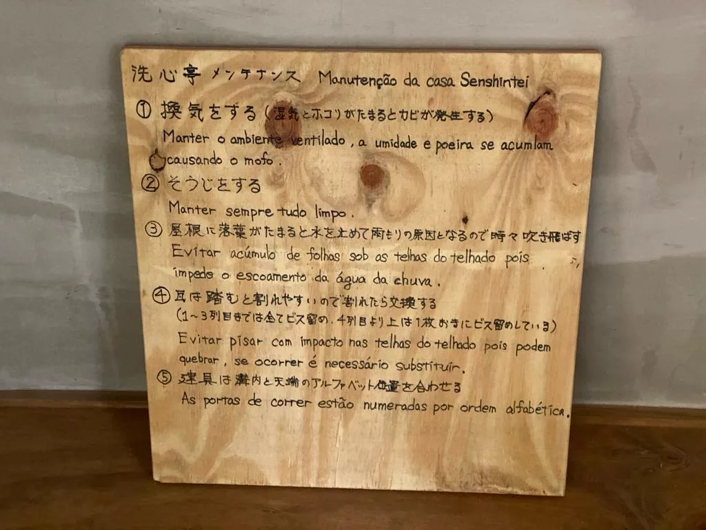 A Citur, que administra o local, contratou a arquiteta Elisabete Emi Niwa para a coordenação da obra. Ela explica que a casa é feita com três tipos de madeira: pinus de reflorestamento, cedro australiano e eucalipto. “Nós fizemos uma pesquisa e, inclusive, mandamos amostras para o Japão para eles aprovarem”, relata a arquiteta.