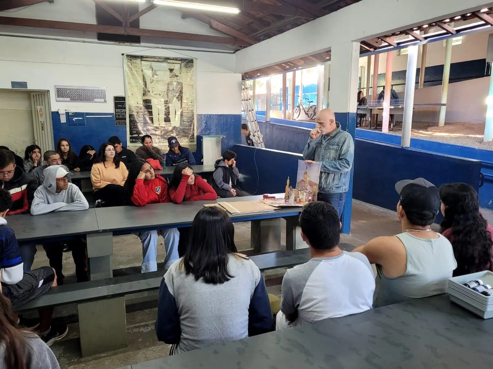 A exposição no Museu é o resultado de oficinas que aconteceram em escolas públicas de Poços de Caldas, como Edmundo Cardillo, Caic, Carmélia de Castro, Criatividade. E ainda uma ação com alguns alunos da PUC Poços no Studio 1.3. “São mais de 200 trabalhos desses alunos, que, através da técnica do stêncil e do pop up, conheceram a obra e a vida de Bruno Filisberti.