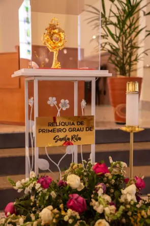 Outro ponto alto são as relíquias de primeiro grau, ou seja, fragmentos do corpo da santa. Por meio da pele e da espinha, a presença de Santa Rita no local é simbolizada.