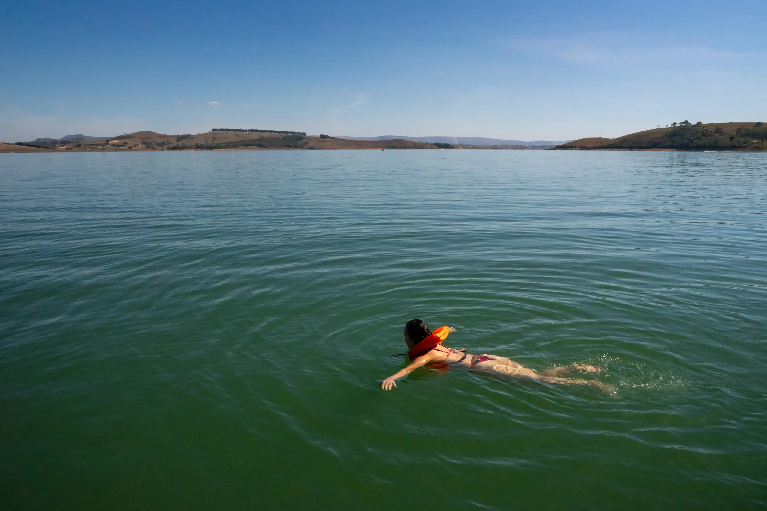 A capacidade é de 28 pessoas sentadas, mais duas na tripulação. “É inesquecível navegar aqui no Mar de Minas e aproveitar esse pedacinho do céu”, resume Gisele.