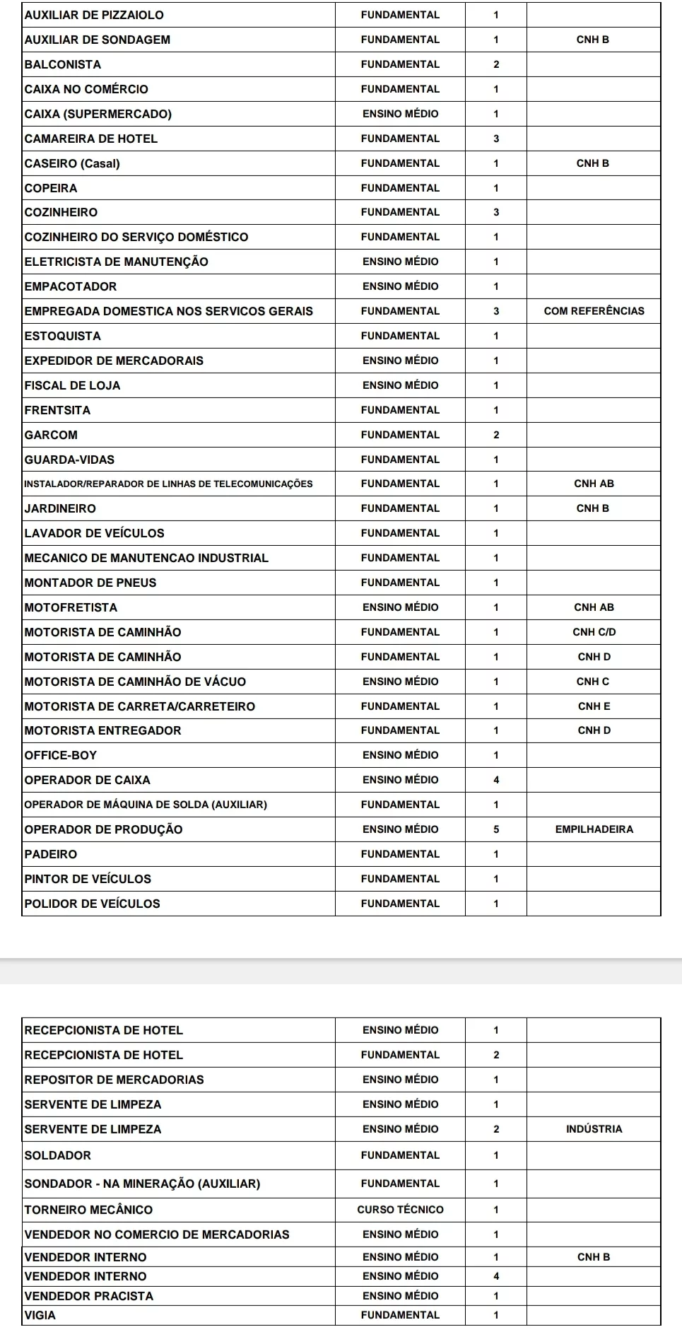 As vagas disponíveis estão no quadro abaixo e podem sofrer alterações ao longo do dia. O Sine fica na rua XV de Novembro, 386.