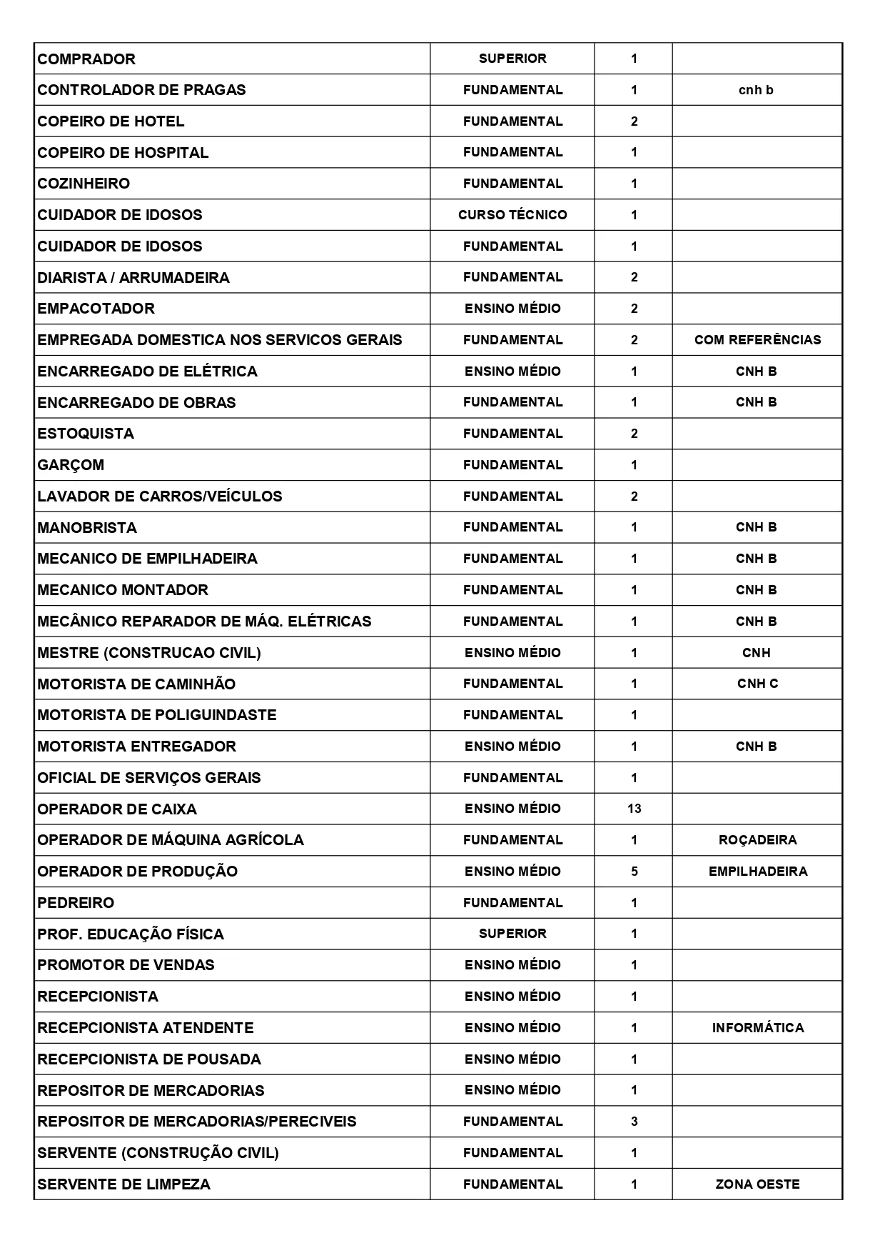 As vagas disponíveis estão no quadro abaixo e podem sofrer alterações ao longo do dia. O Sine fica na rua XV de Novembro, 386.
