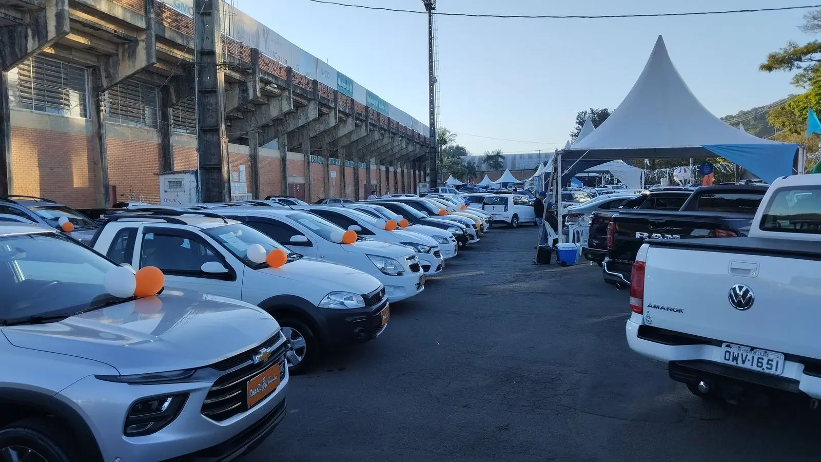 São 12 lojas multimarcas participantes e cada uma tem diferentes atrativos para os clientes, como tanque cheio, transferência gratuita ou melhor avaliação na troca. Há cerca de 300 veículos disponíveis, entre carros, motos e náuticos.