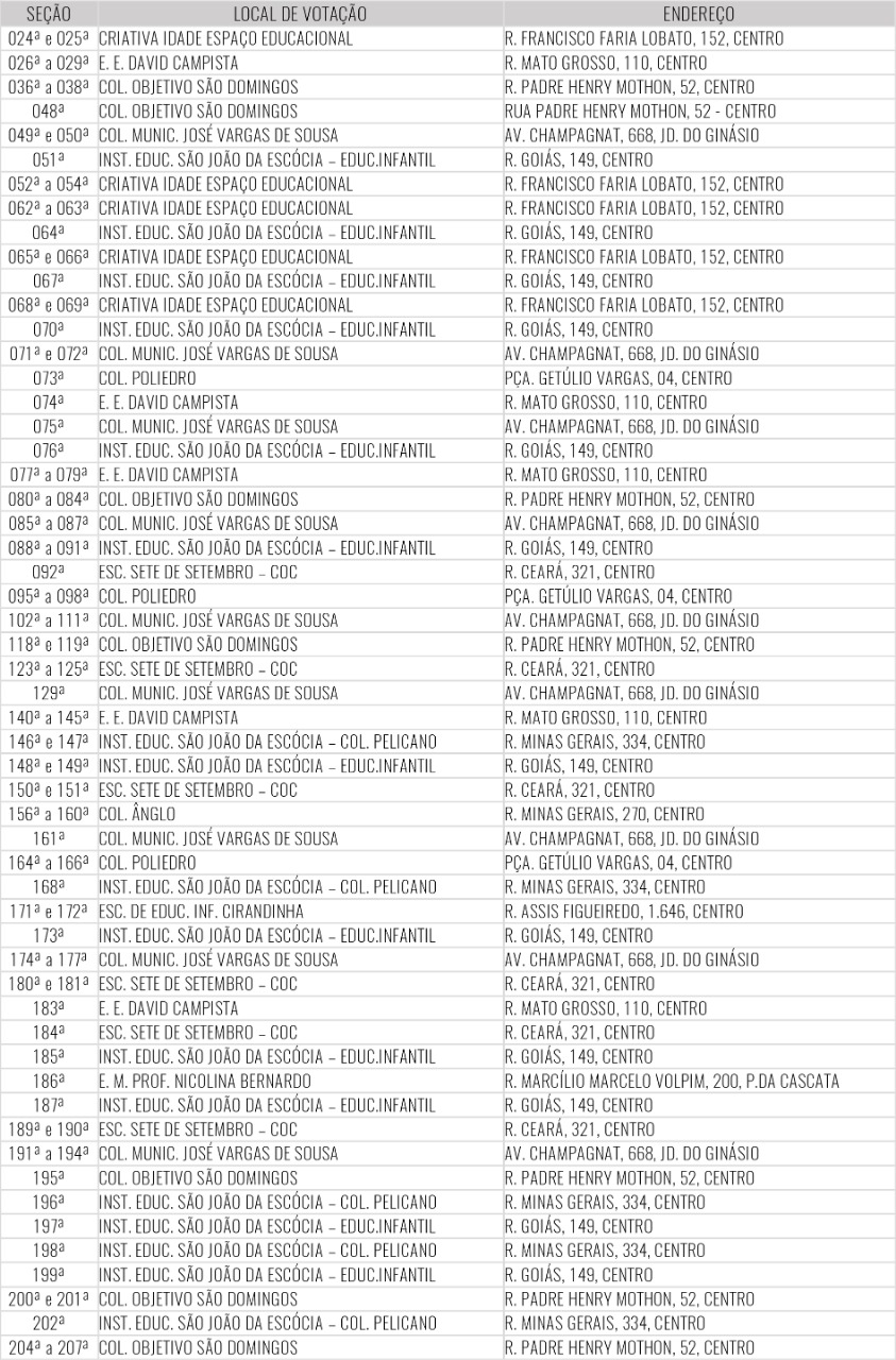 Confira abaixo os locais de votação em Poços de Caldas: