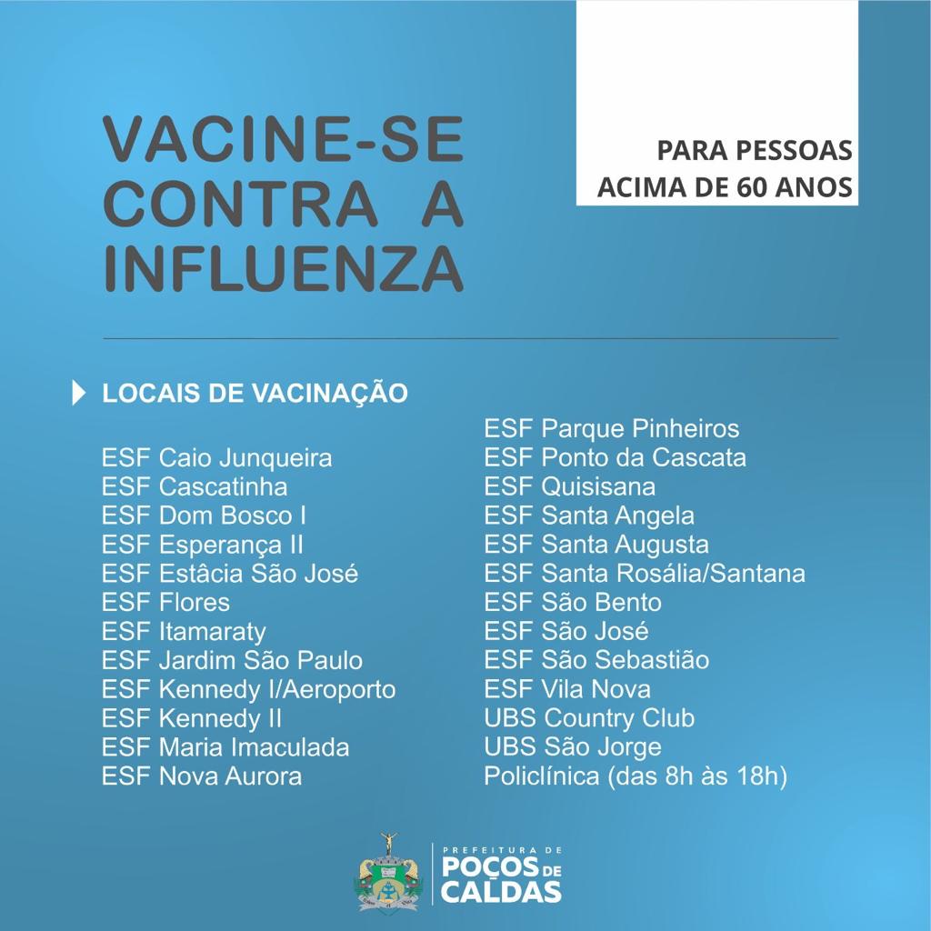 Neste momento a campanha é voltada para os idosos acima de 60 anos. Vale lembrar que medidas de segurança estão sendo adotadas para que não haja aglomeração de pessoas nas unidades.