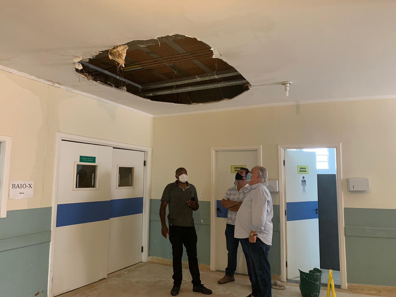 A área precisou ser interditada e por sorte ninguém se feriu. Os secretários de Saúde, Carlos Mosconi, e de Obras, José Benedito Damião, também estiveram no local para verificar a situação e conversar com os servidores do hospital. Segundo a Saúde, já estava em andamento o projeto de revisão do telhado, com o objetivo de resolver este problema “crônico e antigo de infiltração”, como explica a nota.